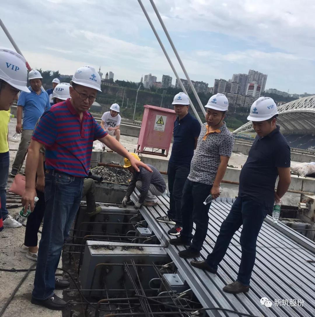 ? ? ? ?近日,工程構件銷售公司組織骨干員工一行16人,由總經理親自帶隊,前往萬州長江三橋中交路建施工段現場參觀學習,助力大位移伸縮裝置安裝。全體人員就伸縮裝置安裝全過程:清渣-吊裝-調平-織筋-混凝土澆筑,進行現場觀摩學習,總經理在現場進行了講說,并與銷售骨干、技術、施工組織人員進行溝通交流。借此機會,總經理在現場還結合萬州三橋橋梁結構,針對支座、橋檢車等橋梁構件產品應用與銷售人員進行講解、溝通。