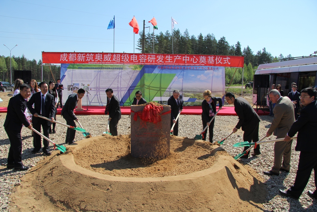 ? ? ? ?最后,白俄羅斯經(jīng)濟(jì)部副部長雅羅申科、明斯克市副市長讓娜女士、四川省發(fā)改委主任唐利民、中國駐白俄羅斯使館經(jīng)商參處參贊劉雪松、招商局董事、中白合資公司CEO胡政、中白合資公司總經(jīng)理李海欣、成都新筑公司副總裁杜曉峰、明斯克市政機(jī)車廠總經(jīng)理卡爾等為成都新筑奧威超級(jí)電容研發(fā)生產(chǎn)中心進(jìn)行奠基培土。