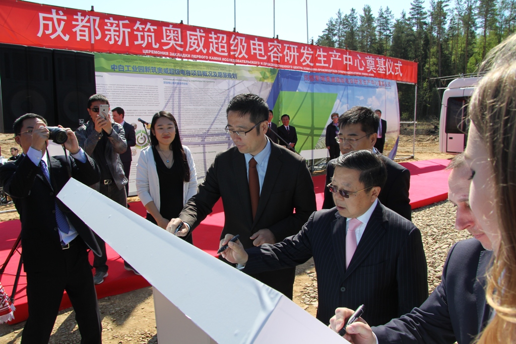? ? ? ?中白合資公司CEO胡政和中國駐白俄羅斯大使館劉雪松參贊發(fā)言時(shí)總結(jié)新筑奧威超級(jí)電容項(xiàng)目是中白工業(yè)園“四個(gè)第一”項(xiàng)目:即是園區(qū)第一個(gè)正式動(dòng)工的生產(chǎn)型企業(yè);第一個(gè)已取得白俄羅斯具體訂單的項(xiàng)目;第一個(gè)入園的具有世界領(lǐng)先水平的高科技項(xiàng)目;第一個(gè)當(dāng)年開工,當(dāng)年竣工的入園企業(yè)在建項(xiàng)目。