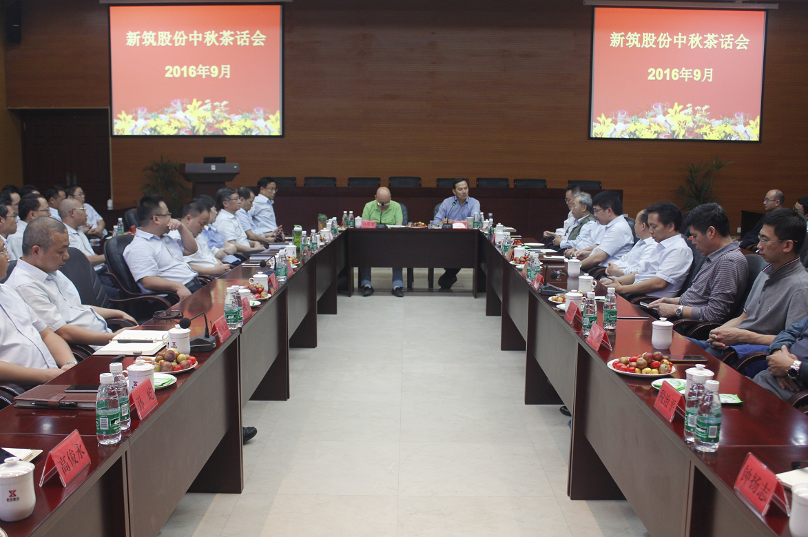 ? ? ? ?金風(fēng)送爽,中秋月圓。中秋佳節(jié)來臨之際,9月14日下午,新筑股份2016中秋茶話會(huì)在223會(huì)議室順利召開,公司高層領(lǐng)導(dǎo)與各單位骨干人員共計(jì)100余人歡聚一堂,共慶佳節(jié),共敘友情,共謀發(fā)展。公司董事長(zhǎng)黃志明、總裁馮克敏和相關(guān)公司領(lǐng)導(dǎo)出席了此次茶話會(huì)議,會(huì)議由總裁馮克敏主持。