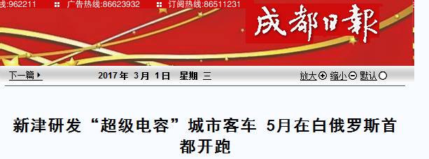 公司研發的超級電容產品,已經達到世界領先水平,產品遠銷白俄羅斯、以色列、伊朗、奧地利等國家,商業化運營里程已超過一千萬公里。