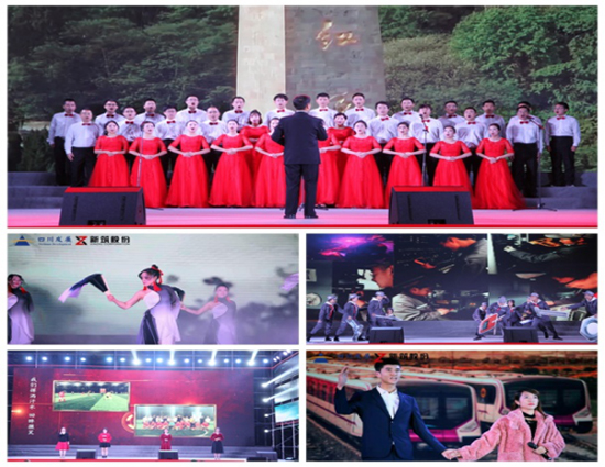 第一篇章,揚帆五津。聯合工會、長客新筑工會、工程構件事業部工會通過合唱、舞蹈、朗誦、情景劇展現了新筑股份創業之初,新筑人艱苦奮斗、追逐光榮、堅守夢想的精神。