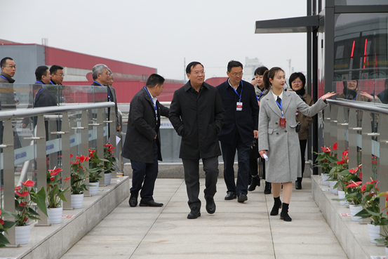 楊洪波副省長首先來到新筑股份普興軌道交通產業基地,視察了新筑股份內嵌式中低速磁浮綜合試驗線,詳細聽取了試驗線建設情況和磁浮車輛性能等方面講解,并試乘體驗了內嵌式中低速磁浮交通系統。