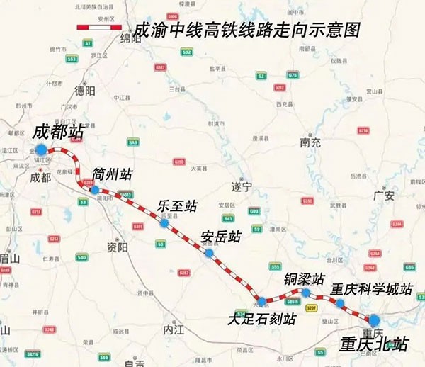 新建成渝中線鐵路(含十陵南站)重慶段正線全長102.698公里,設計時速350km/h。成渝中線鐵路北接渝萬高鐵、鄭渝高鐵,是國家“八縱八橫”高鐵網中沿江通道的重要組成部分。作為成渝地區雙城經濟圈建設的引領性、標志性、示范性工程,成渝中線鐵路對構建川渝一體化綜合交通運輸體系,強化成渝雙核引領、區域聯動,共建“一帶一路”和長江經濟帶發展,推進新時代西部大開發形成新格局具有重要的支撐作用。