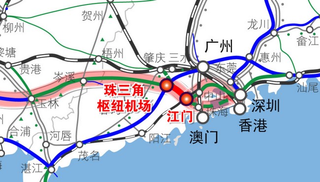 廣湛鐵路是國家“八縱八橫”高速鐵路網中時速350公里沿海客運大通道的重要組成部分,正線全長400.11公里,線路從廣州站引出,終至湛江北站。珠三角樞紐機場段是廣湛鐵路的組成部分,全長78.78千米,線路自西江橋尾引出,終至新興南站,設珠三角樞紐機場、新興南2個車站,共設橋梁72座,合計42.418km;隧道20座,總長23.932km,建設工期3年,與全線同步建成開通。該線路是滿足粵港澳大灣區對接粵西,實現均衡發展的重要載體,是串聯海西、珠三角、北部灣及東盟貿易區的沿海高速新通道的重要組成部分,建成后將極大改善粵西地區群眾出行條件,對促進沿線地區經濟社會發展和區域協調發展起到重要作用。