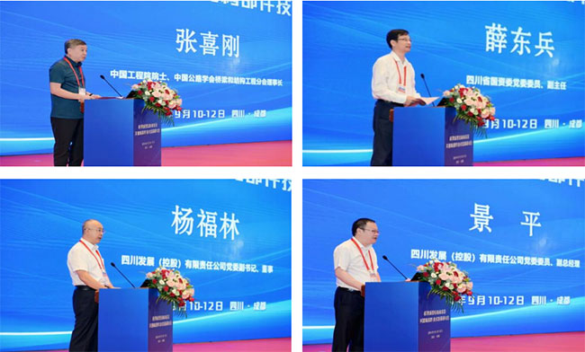 9月11日上午大會開幕式上,中國工程院院士、中國公路學會橋梁和結構工程分會理事長張喜剛,四川省國資委黨委委員、副主任薛東兵,四川發展(控股)有限責任公司黨委副書記、董事楊福林發表了熱情洋溢的致辭,他們期望與會的專家和代表們能通過本次會議,總結我國橋梁新型結構體系及關鍵構部件方面的新理念、新方法、新技術,凝聚共識,探索打通橋梁工程上下游產業鏈的有效路徑,推動橋梁行業實現融合發展。大會開幕式由四川發展(控股)有限責任公司黨委委員、副總經理景平主持。