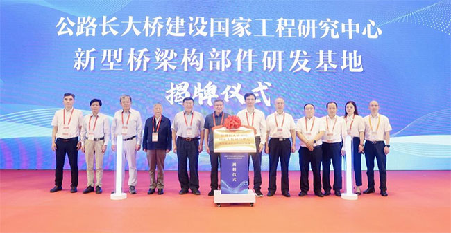 大會開幕式上,還舉行了一場重要的揭牌儀式,由中國工程院院士、中國公路學會橋梁和結構工程分會理事長張喜剛與成都市新筑路橋機械股份有限公司黨委書記、董事長肖光輝共同揭牌,宣告“公路長大橋建設國家工程研究中心-新型橋梁構部件研發基地”正式落戶于成都新筑公司。該基地的啟動將為更好地發揮區域產業優勢,促進產學研用技術成果轉化起到積極的推動作用,并將進一步助力橋梁建養產業的轉型升級與高質量發展。