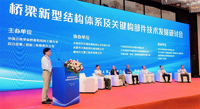 為助力我國橋梁高質量發展,促進橋梁新型結構體系及關鍵構部件技術創新,提高橋梁工程設計、施工、建造和運維水平,2024年9月10-12日,由中國公路學會橋梁和結構工程分會與四川發展(控股)有限責任公司聯合主辦,《橋梁》雜志社與中交公路規劃設計院有限公司、中交公路長大橋建設國家工程研究中心有限公司及成都市新筑交通科技有限公司共同承辦的“橋梁新型結構體系及關鍵構部件技術發展研討會”在四川省成都市舉行。