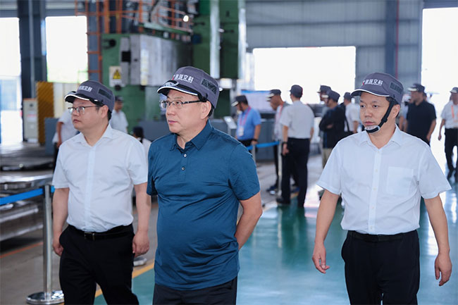 首先在新筑交科綜合展廳,向領導專家們介紹了公司構件產業發展歷程、技術研發、生產制造、質量檢測能力、各項榮譽成就以及企業文化。隨后參觀考察了6號車間的大噸位支座和特殊支座的機加工、涂裝和組裝等工序,以及近年來新筑交科在鋼支座、阻尼器、橡膠支座、橋檢車、伸縮縫、嵌入式軌道上進行的技術創新和新產品。