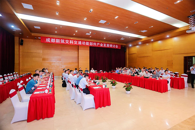 參觀結束后,張喜剛院士及各位嘉賓在新筑股份公司進行了“成都新筑交通功能部件產業發展研討會”,四川發展黨委委員,副總經理景平出席座談會,新筑股份黨委副書記、總經理夏玉龍主持了本次會議,新筑交科黨委書記、董事長楊麗進行了“新筑交通功能構件產業的發展規劃匯報”,張喜剛院士及與會專家充分肯定了公司近年來取得的成就,并呼吁橋梁行業設計、建設、管養單位更加重視橋梁新型結構體系與橋梁關鍵構部件的協同創新發展,并希望新筑交科繼續增強能力,充分發揮橋梁關鍵構部件領域龍頭企業的作用,讓“新型橋梁構部件研發基地”成為橋梁工程“產-學-研-用”創新載體的典范。